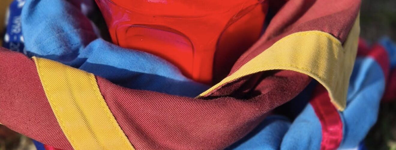 Zapaljena Svijeća ukrašena izviđačim maramama, za sve one koji više nisu s nama i koji nam čuvaju mjesto uz vječnu izviđačku logorsku vatru.