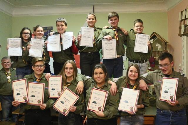 Nekoliko je izviđača uz svečanost izviđačke himne dalo izviđački zavjet i dobili su izviđačku maramu, znak prihvaćanja izviđačkih načela. Prije zakuske i kolača, podijelili smo i priznanja za osvojena znanja izviđača.