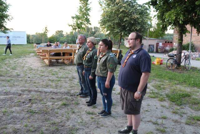 Istog dana u večernjim satima organizirali smo Smotru osječkih izviđača i kulturno zabavni program uz Izviđački fenjer. Bilo je veselo i zabavno, pjevavali smo, pričali viceve i glumili. Nakon zabavnog programa i kviza znanja o izviđačima večerali smo zajedno uz predivnu rijeku Dravu.