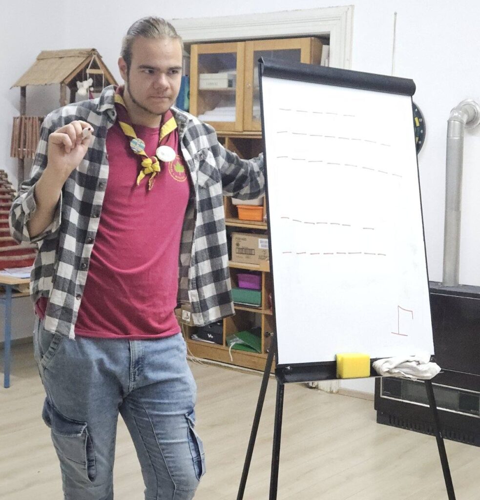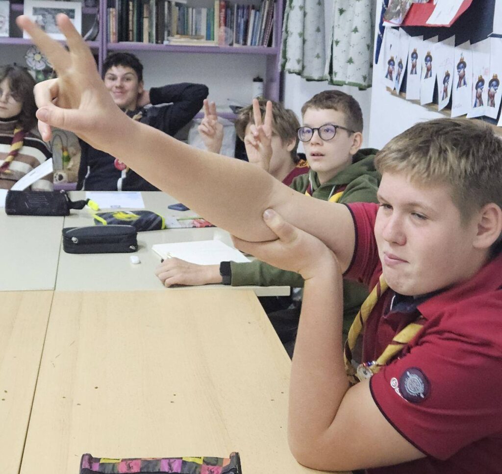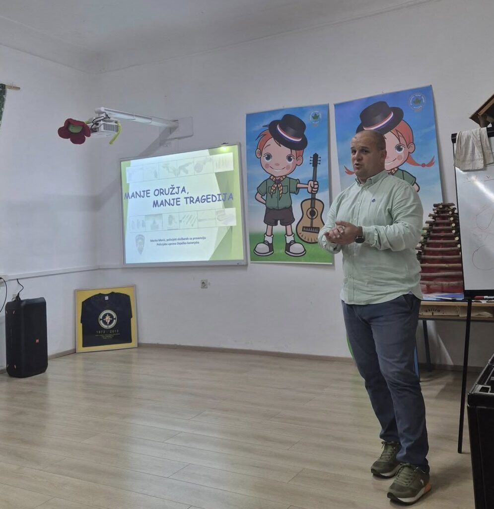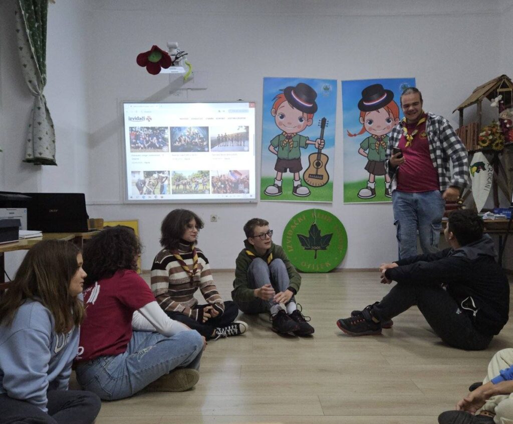 Radionica za mlade bila je usmjerena na sigurnost i odgovorno ponašanje u prirodi. Sudionici su razgovarali o sigurnom kretanju kroz šumu tijekom sezone lova, o minsko-eksplozivnim opasnostima u šumi, sigurnosnim postupcima pri izviđačkim i lovačkim aktivnostima te o važnosti poštivanja prirode i životinjskog svijeta. Gost na ovoj aktivnosti bio je gospodin Marko Marić iz Policijske uprave Osječko-baranjske županije. Kroz praktične primjere i kratke demonstracije naučili su kako prepoznati rizične situacije, kako reagirati u slučaju nezgode te koje su osnovne vještine potrebne za siguran boravak u prirodi. Poseban naglasak stavljen je na timski rad, odgovornost i razvijanje svijesti o sigurnosti – vrijednosti koje su temelj svake aktivnosti na otvorenom.