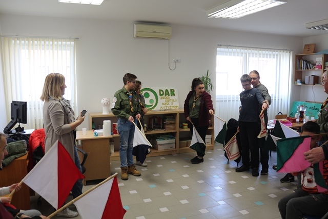 • Naši mlađi izviđači i planinke iz družine Runolist pripremili su i realizirali izviđačku aktivnost za članove Udruge Dar, udruge obitelji djece s autizmom. U nedjelju 26.2. izviđači su došli u prostore udruge Dar gdje su ih dočekala djeca s roditeljima. Zajedno smo savladali jedan izviđački čvor i nekoliko slova signalnim zastavicama, igrali se i pričali o izviđaštvu. Naravno bilo je tu i izviđačke pjesme. Aktivnost je prošla kao u trenu i svakako smo najavili još jednu kada ćemo donijeti i izviđačke šatore, koje planiramo podići u parku i družiti se vani.