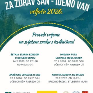 Dragi sugrađani, idemo u šetnju! Zaboravite na kauč i ekrane, vrijeme je za svjež zrak! Veljača nam donosi četiri sjajne prilike za istraživanje Osijeka s izviđačima. Bilo da ste osnovnoškolac, student ili u “najboljim...