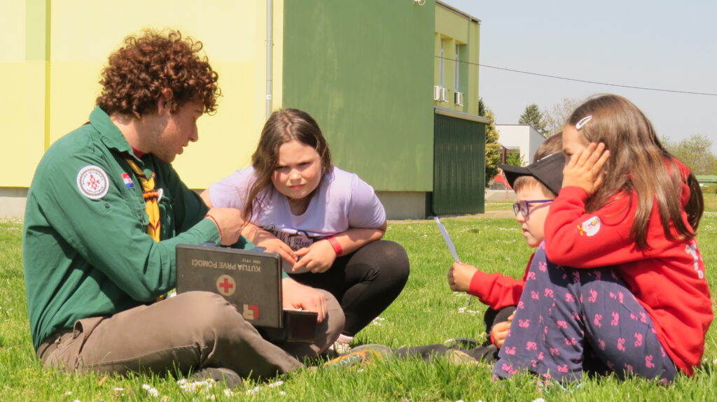 • Tjelesna sprema: Razvoj motorike kroz izviđačke štafete i igre spretnosti poput “Otimanja marame”.