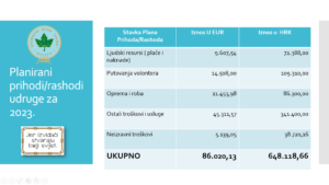 Planirani prihodi i rashodi u 2023. uvećani za osigurana sredstva u 2022. iznose 86.023EUR.